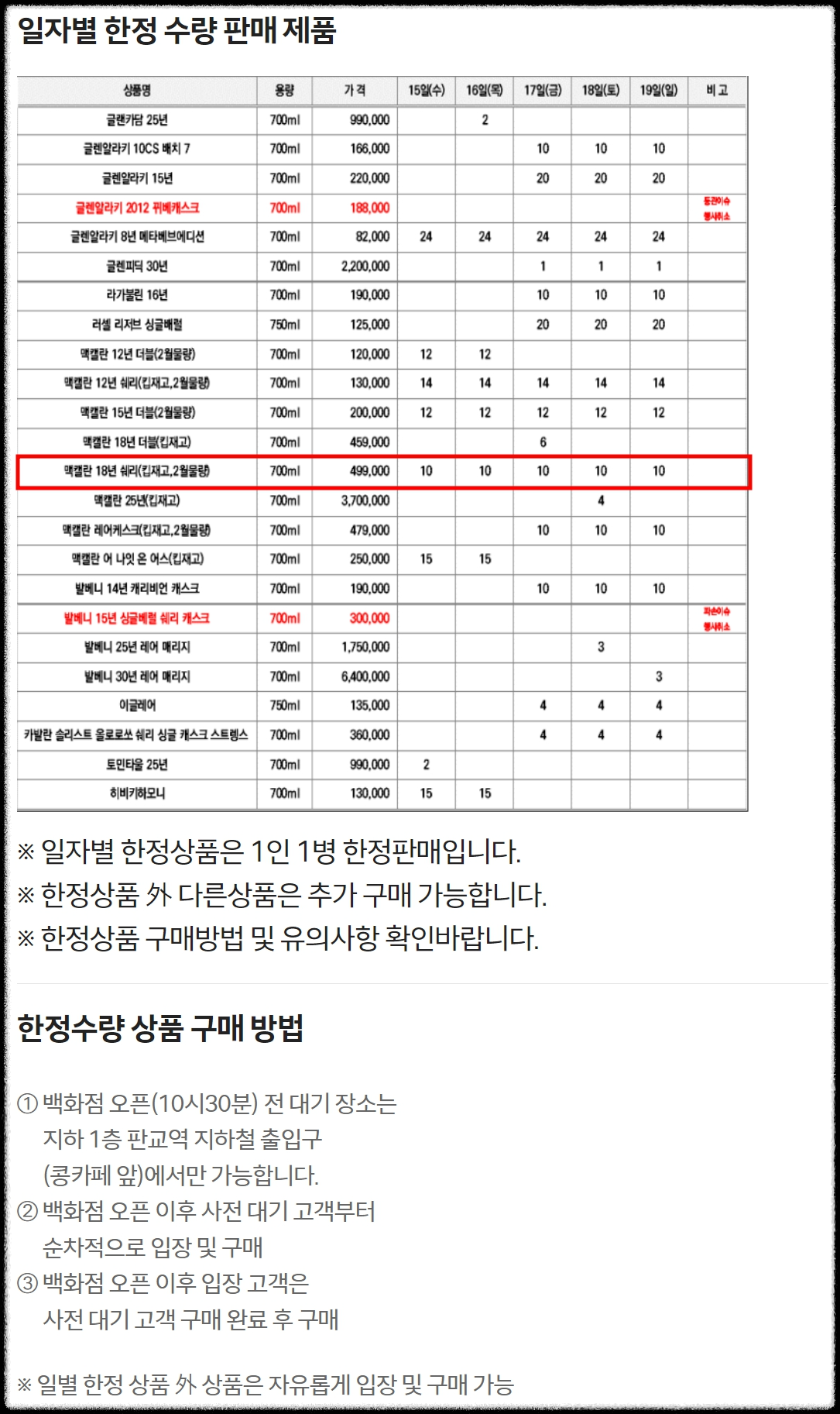 일자별 위스키 한정판매이다.