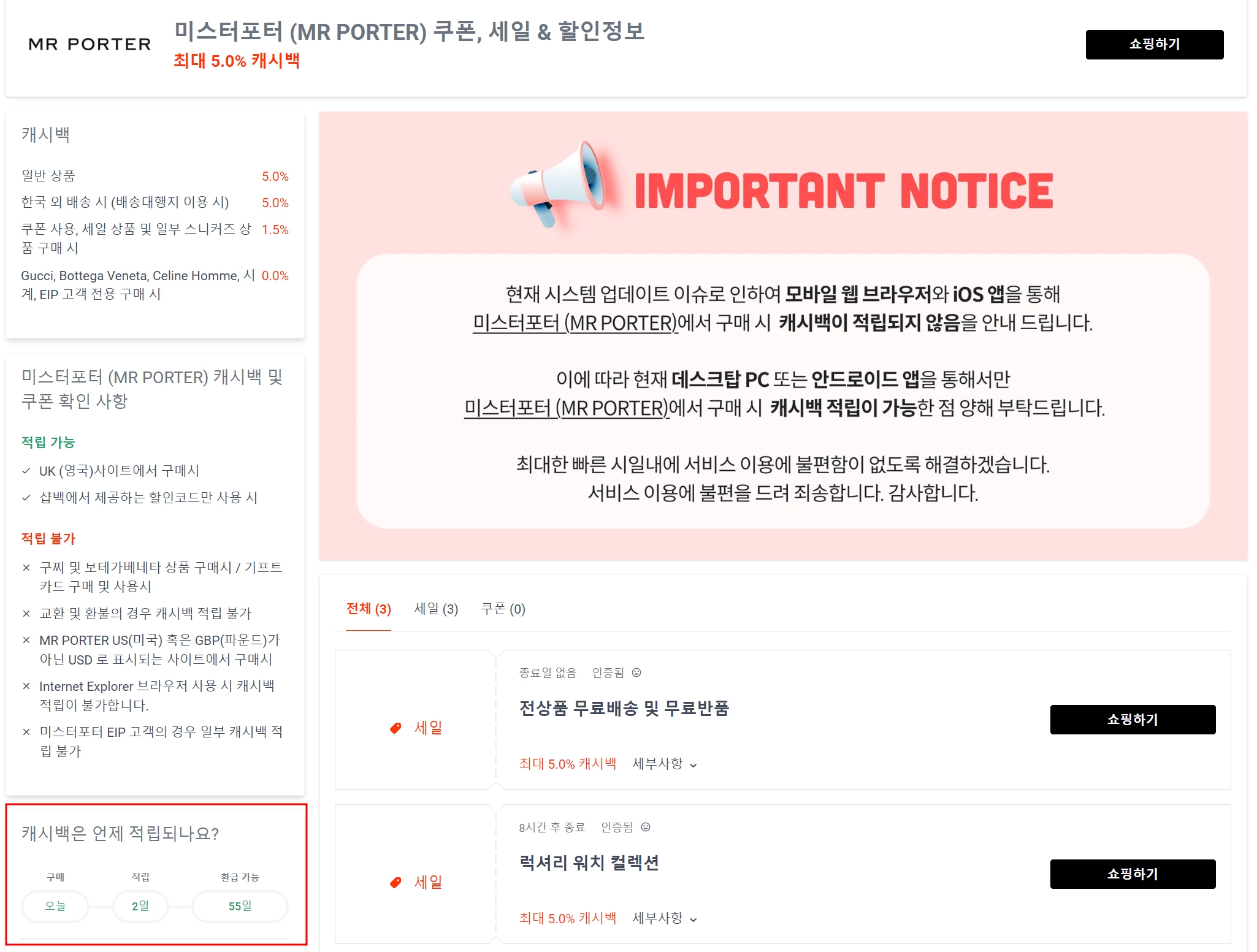 국내 직배 송시 캐시백을 주는 경우가 대부분이라
